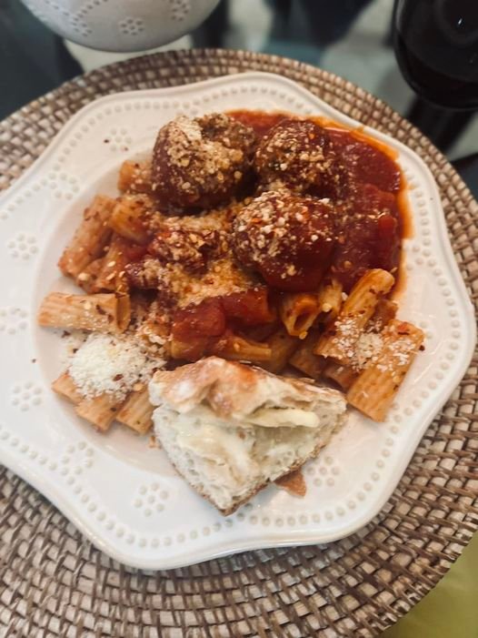 • Toss the cooked rigatoni with the meatballs and sauce, ensuring the pasta is well coated.