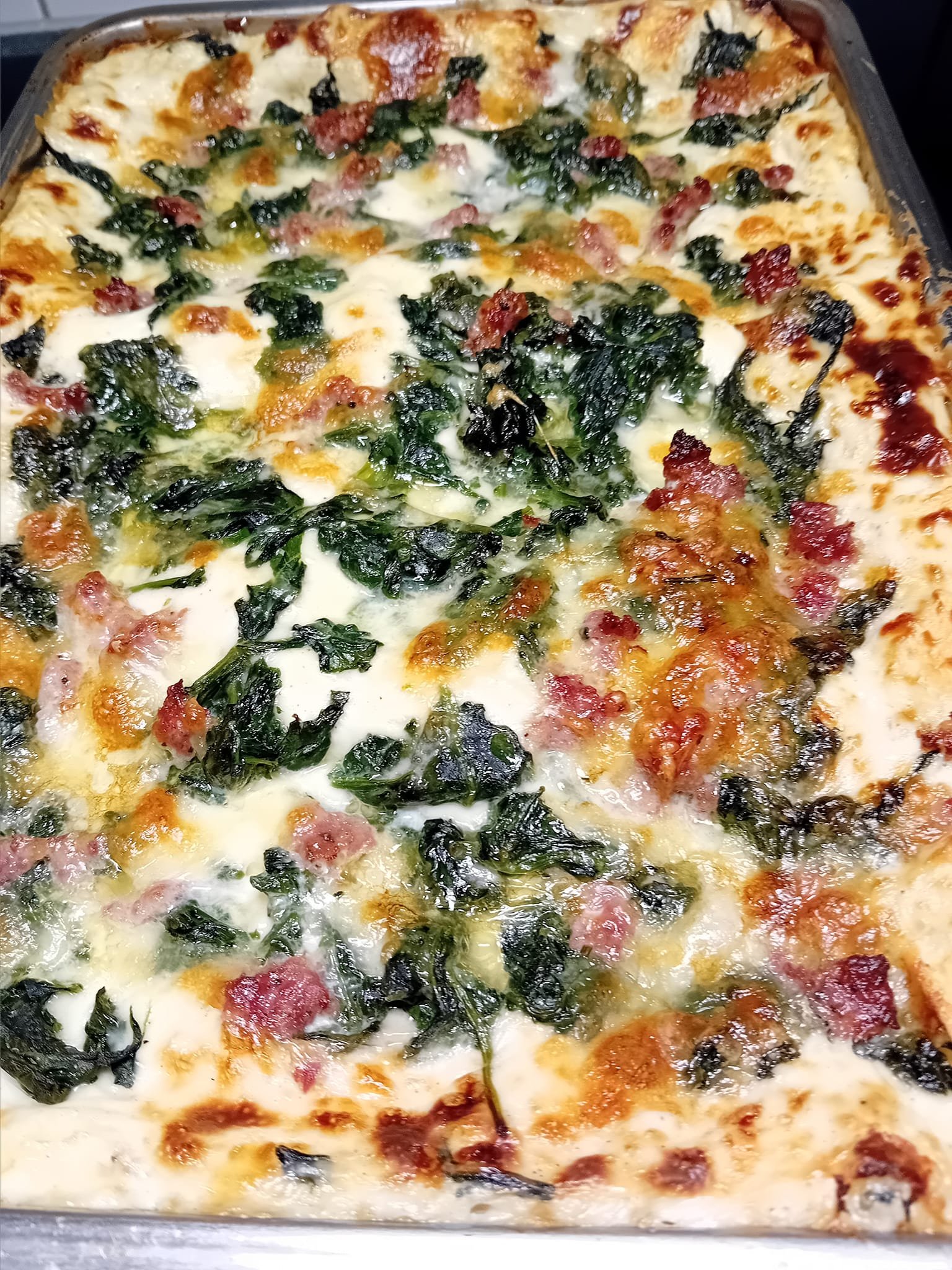 Enjoy your homemade lasagne with spinach and salsicce!