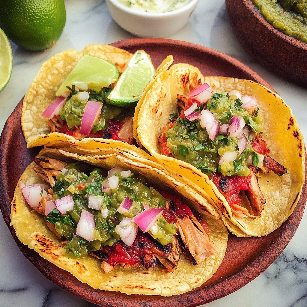 - Assemble the tacos: Warm the tortillas on a skillet. Add a generous portion of shredded chicken to each tortilla.